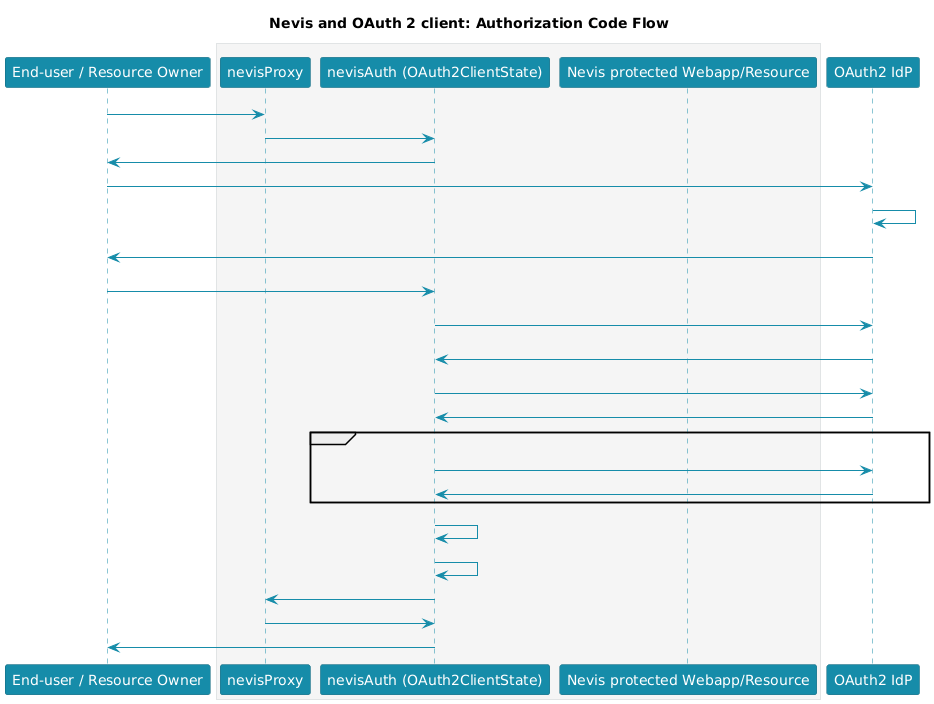 The OAuth2 AuthState(s) implement the authorization code flow. You can use the OAuth2 AuthState(s) to implement the login to a Nevis-protected web application with an OAuth2 identity provider. This is what happens: